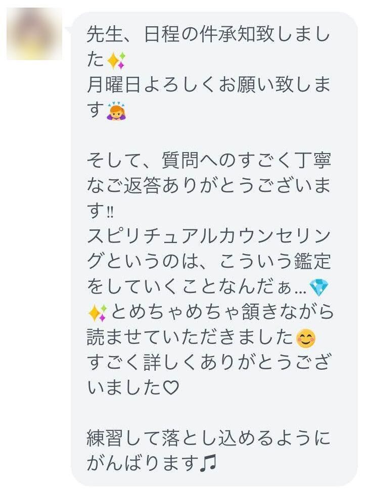 ◆講座で私が最も伝えたいことをたった10秒に究極にまとめきった講座の格言と、閃きを加速させる祝詞を伝授します。この格言を思い出せば、鑑定時にどこへクライアントを導けばよいかが、あっという間に思いつきます。初心にすぐに帰れる切り札です!また、祝詞も簡単に覚えられますので、鑑定以外でも日常的に唱えられ、自然に波動が高まり霊性が磨かれ、自他の悩みの解決能力が上がっていきます。